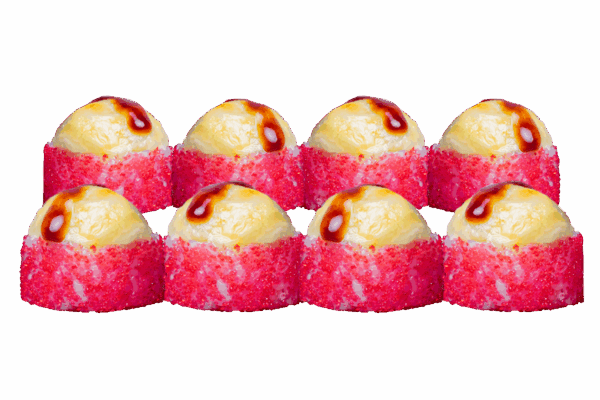 Рол 5 для сету ДіджиталізейшнРол з запеченим лососем та сирною шапочкою Склад: рис, норі, крем сир, запечений окунь, огірок, червона ікра масаго, сирна шапочка, соус унагі.
