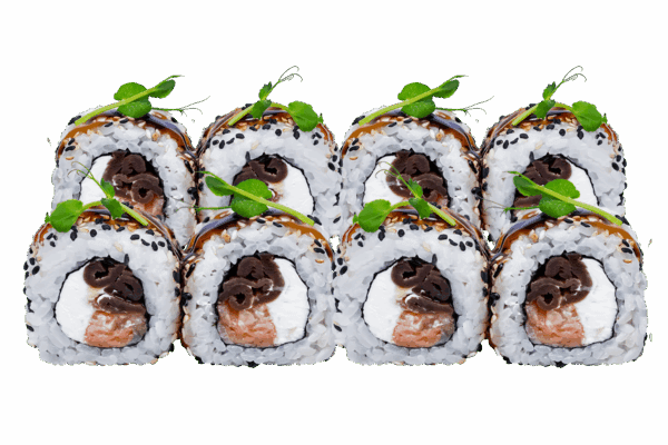 Склад: рис, норі, крем-сир, огірок, маринований тунець, соус спайсі, мікрогрін