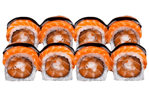 Склад: рис, норі, філе лосося, японський майонез, креветка в темпурі, соус унагі